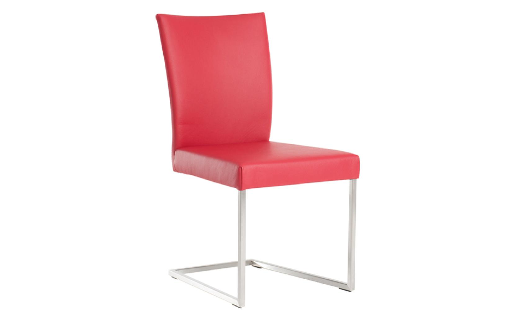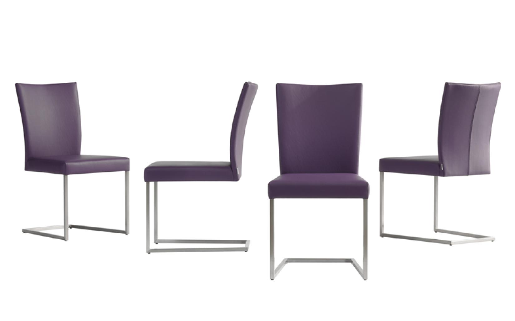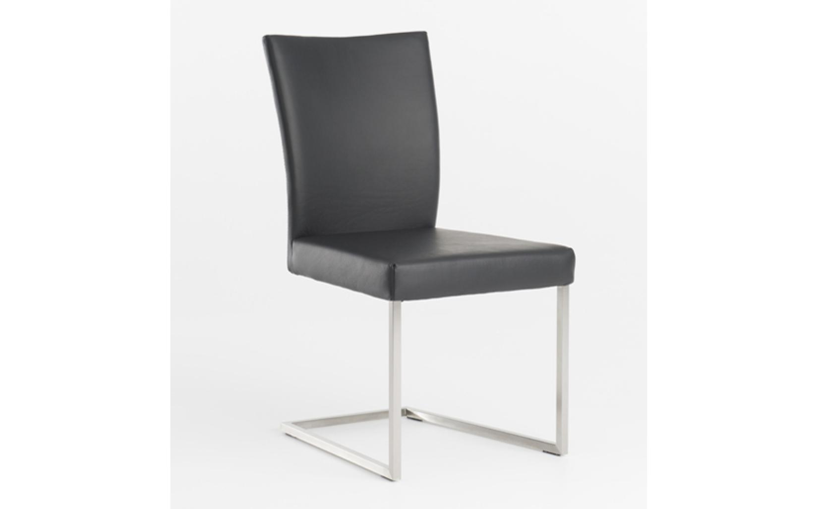 Eetkamerstoel Misty van Bert Plantagie is standaard voorzien van een vierkant RVS sledeframe, maar kan optioneel ook met andere poten geleverd worden. Ook met armlegger leverbaar als model Tidy.