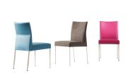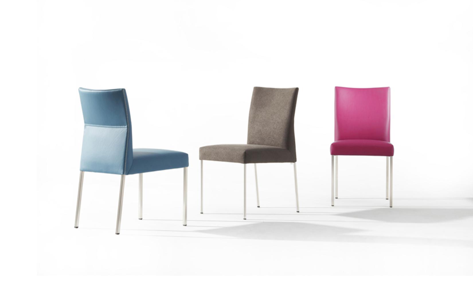 Eetkamerstoel Pose van Bert Plantagie is standaard voorzien van een vierkante RVS poten, maar kan optioneel ook met andere poten geleverd worden. Ook met armlegger leverbaar als model Groove.