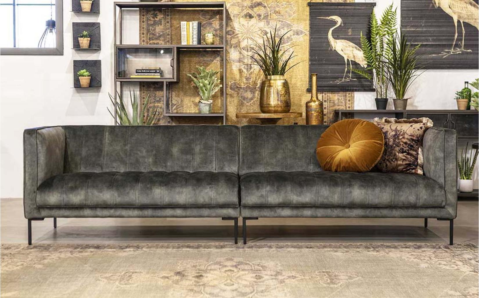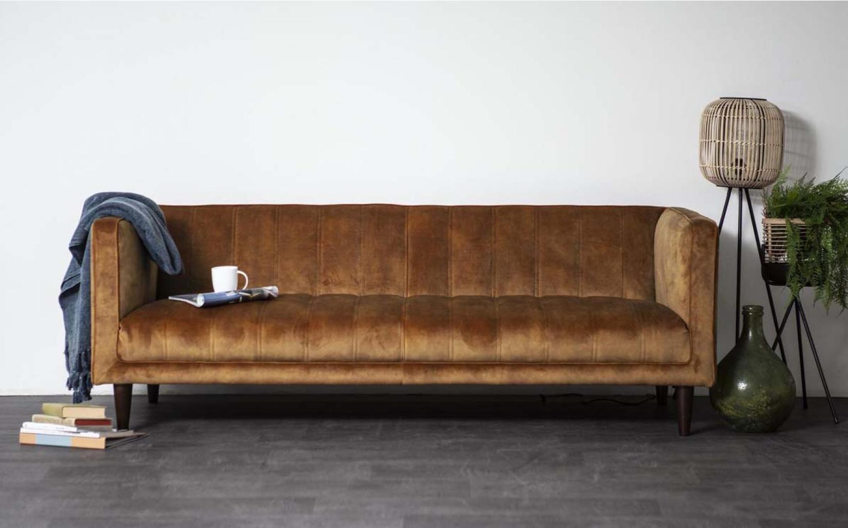 Kom proefzitten in de showroom waar de 4-zits is uitgevoerd in Stof Adore in de kleur Cognac. Model Siem is leverbaar in verschillende soorten en kleuren stof. Ook leverbaar in micro leder.