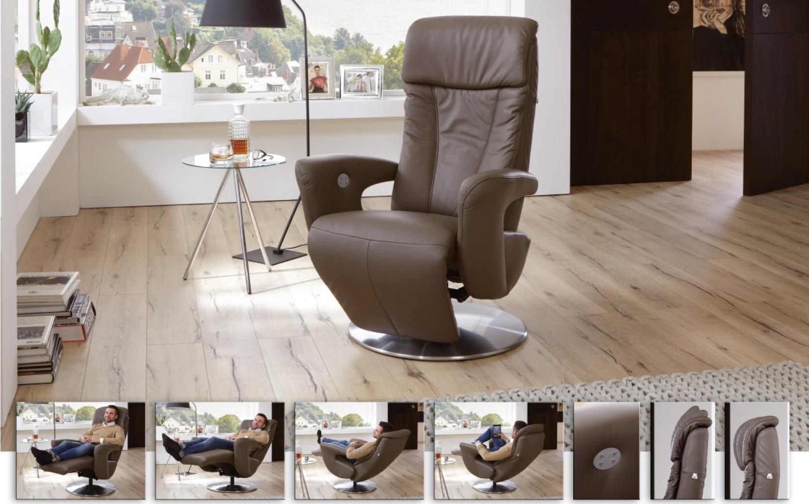 Relaxfauteuil Dreamliner van Hukla. Een draaibaar model relaxfauteuil met handmatige of elektrische bediening. De fauteuil kan ook met sta-op functie besteld worden, het draaisysteem wordt in dit geval gelocked. De fauteuil kan meer meerdere varianten arm en rug geleverd worden. Er zijn dus talloze mogelijkheden in uitvoering. Tevens in meerdere maten zodat er voor iedereen de juiste ergonomie te creëren is en ook meerdere opties van poten. Hukla werkt met een mooie stof- maar bovenal leercollectie. Er zijn wel 150 mogelijkheden in leer; van door en doorgeverfd leer tot natuurlijke look met kleurnuances in het oppervlak. Kom de fauteuil proberen en ervaar het relaxen zoals dat bedoeld is door Hukla. Wij kunnen de gehele collectie van Hukla leveren.