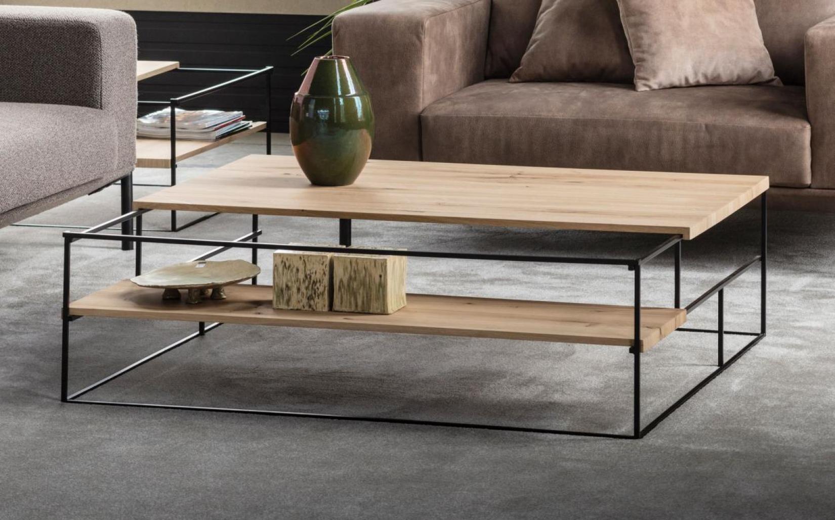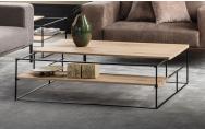 Salontafel Jukebox heeft een metalen frame met twee fineer eiken planken.