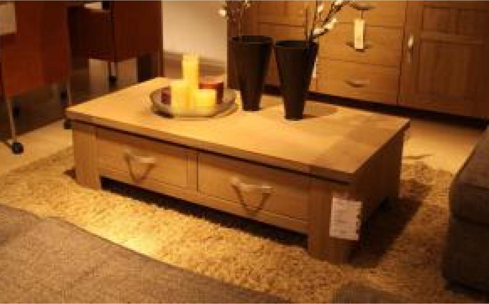 Salontafel Soest, vervaardigd uit massief eikenhout. De salontafel heeft een kopse lat en twee doorschuifladen. Een kwaliteitsmeubel van Nederlands fabrikaat. Vraag ernaar in onze showroom.